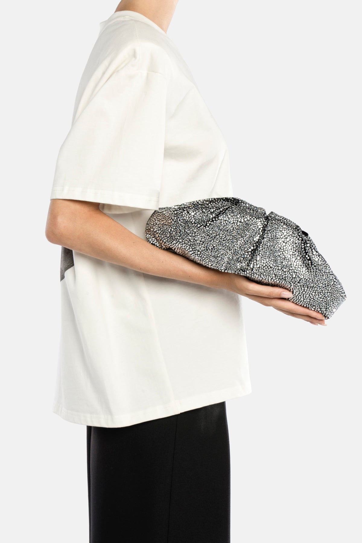Velluto e strass, una pochette raffinata e fashion, da indossare a mano o a tracolla. Aggiungila ai tuoi look per completare con un tocco di glamour.