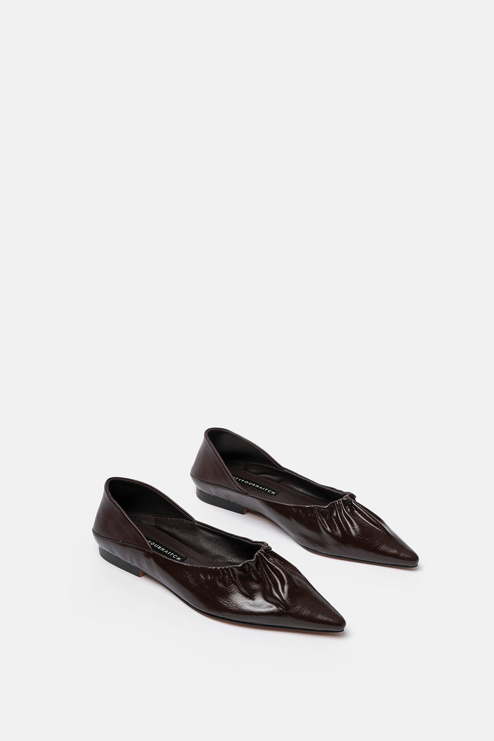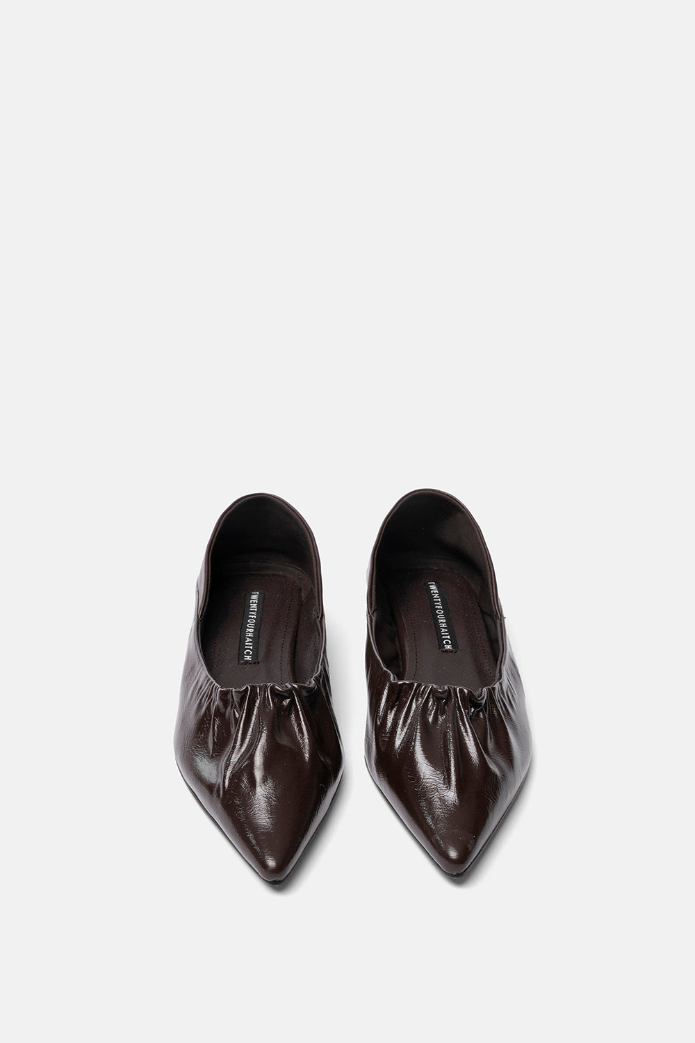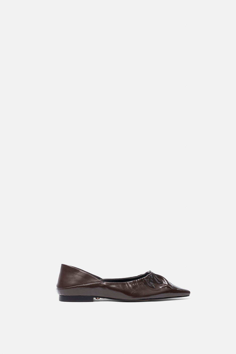 Ballerina a punta testa di moro con dettaglio arricciato e tallone morbido. Versatile, da indossare sia a ballerina che sabot.