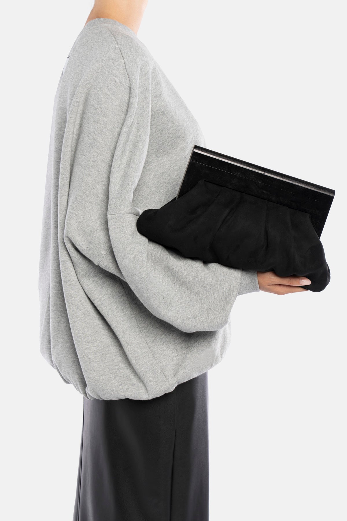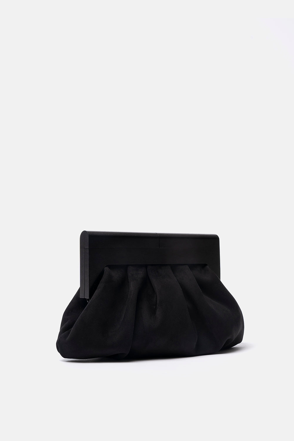 Pochette Alamak nera in camoscio con manico effetto legno.