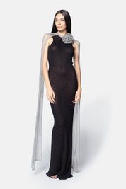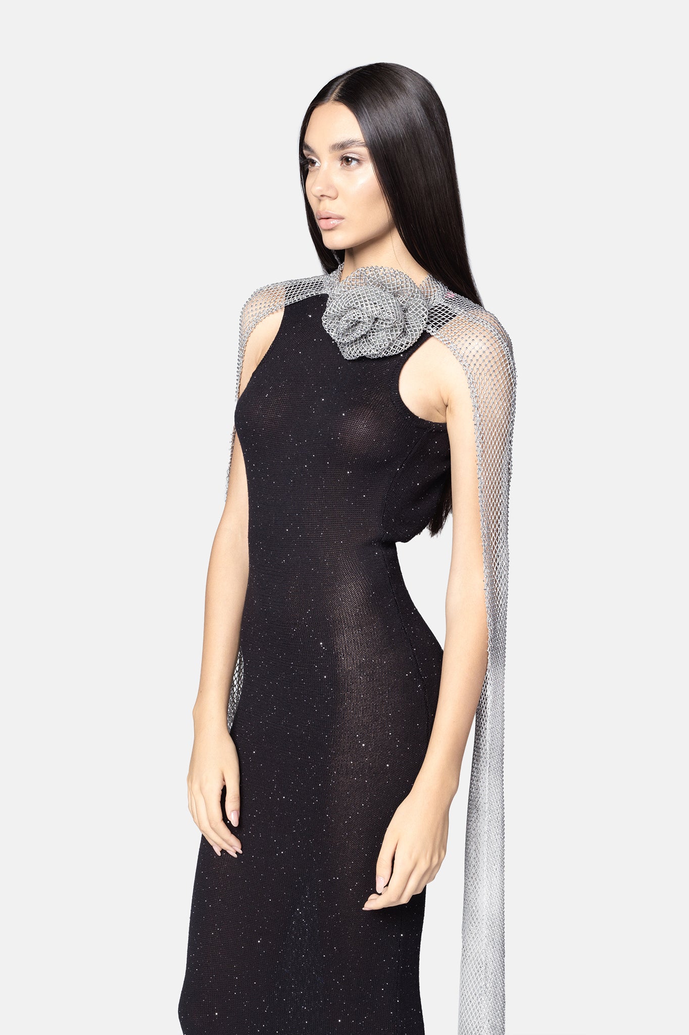 Silver Mantella Scotland in rhinestone mesh with buttons on the back collar. Enriched with a flower applique on the front.