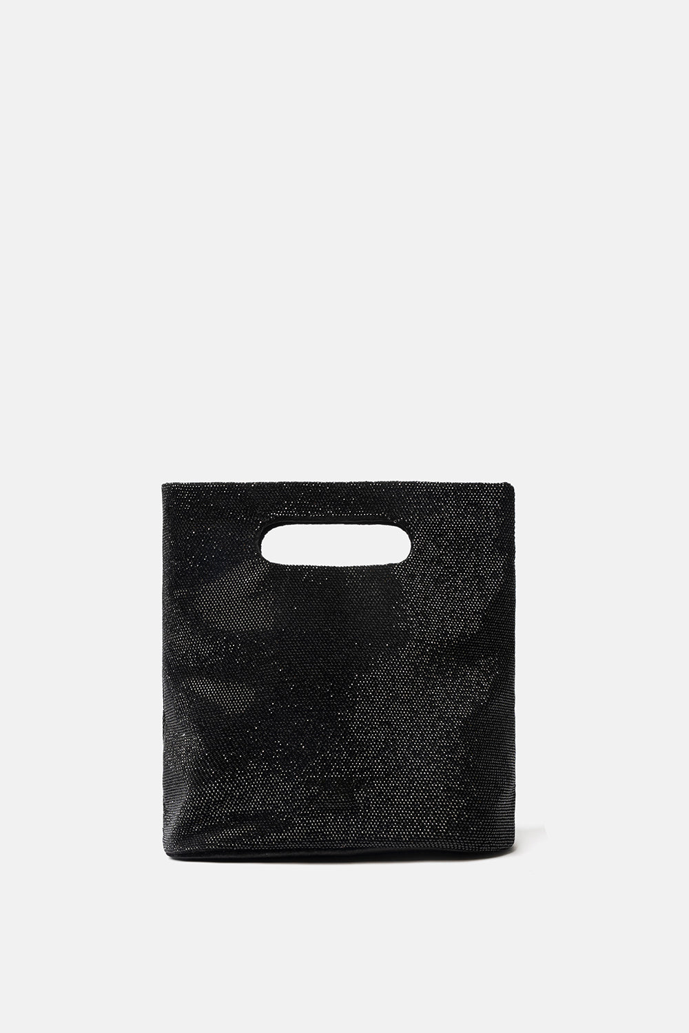 Precious black velvet-based bag, entirely covered with mini rhinestones. Removable velvet shoulder strap. Hidden magnetic closure.