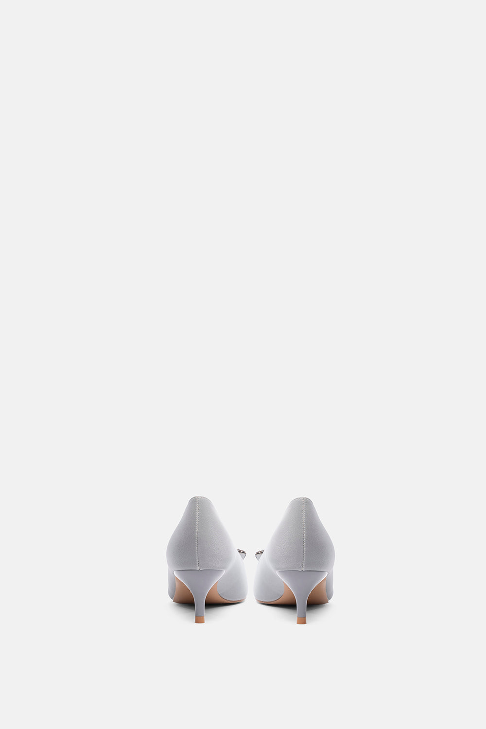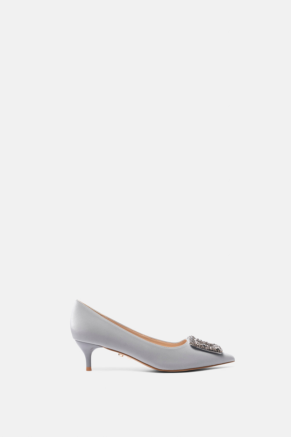 Décolleté Mufrid perla in tessuto tecnico, impreziosito da fibbia gioiello.