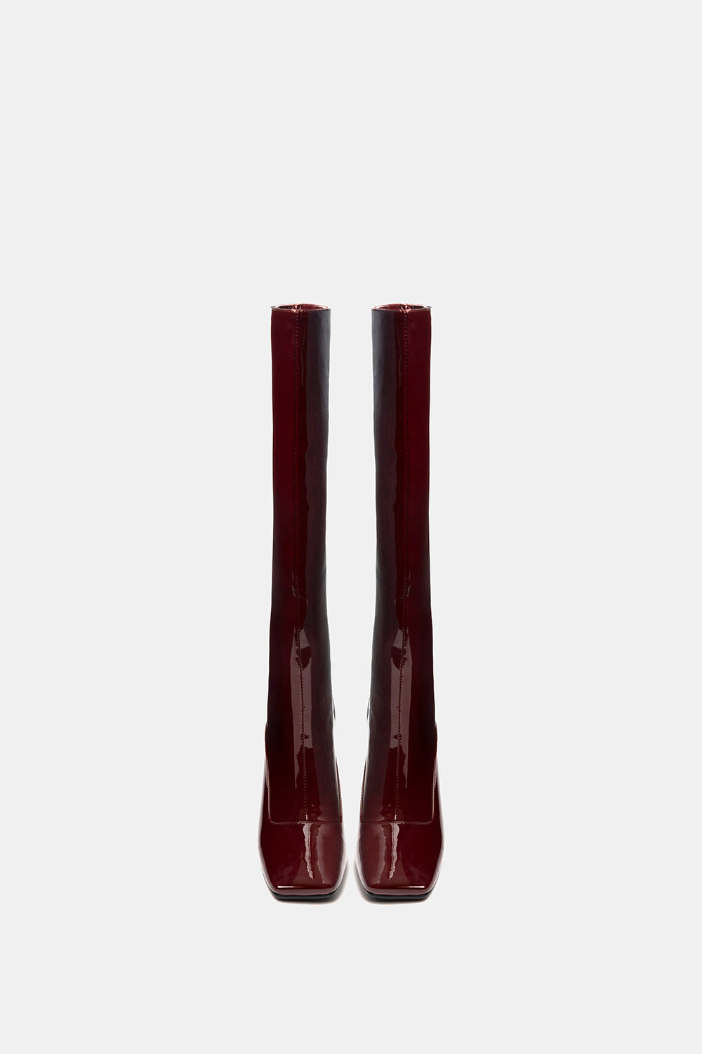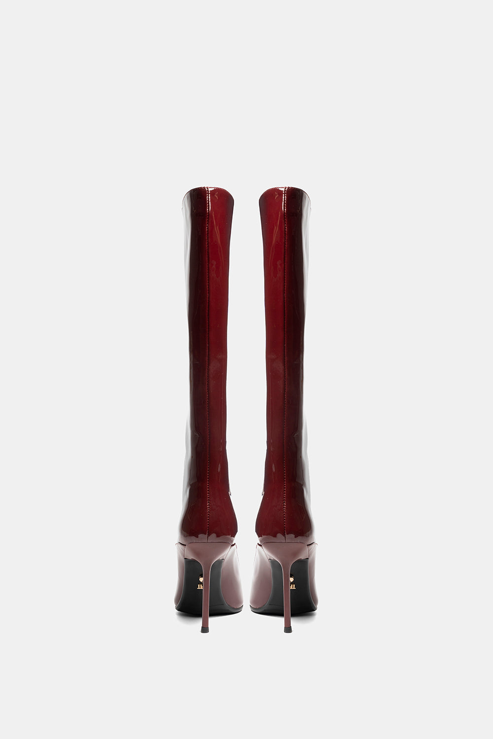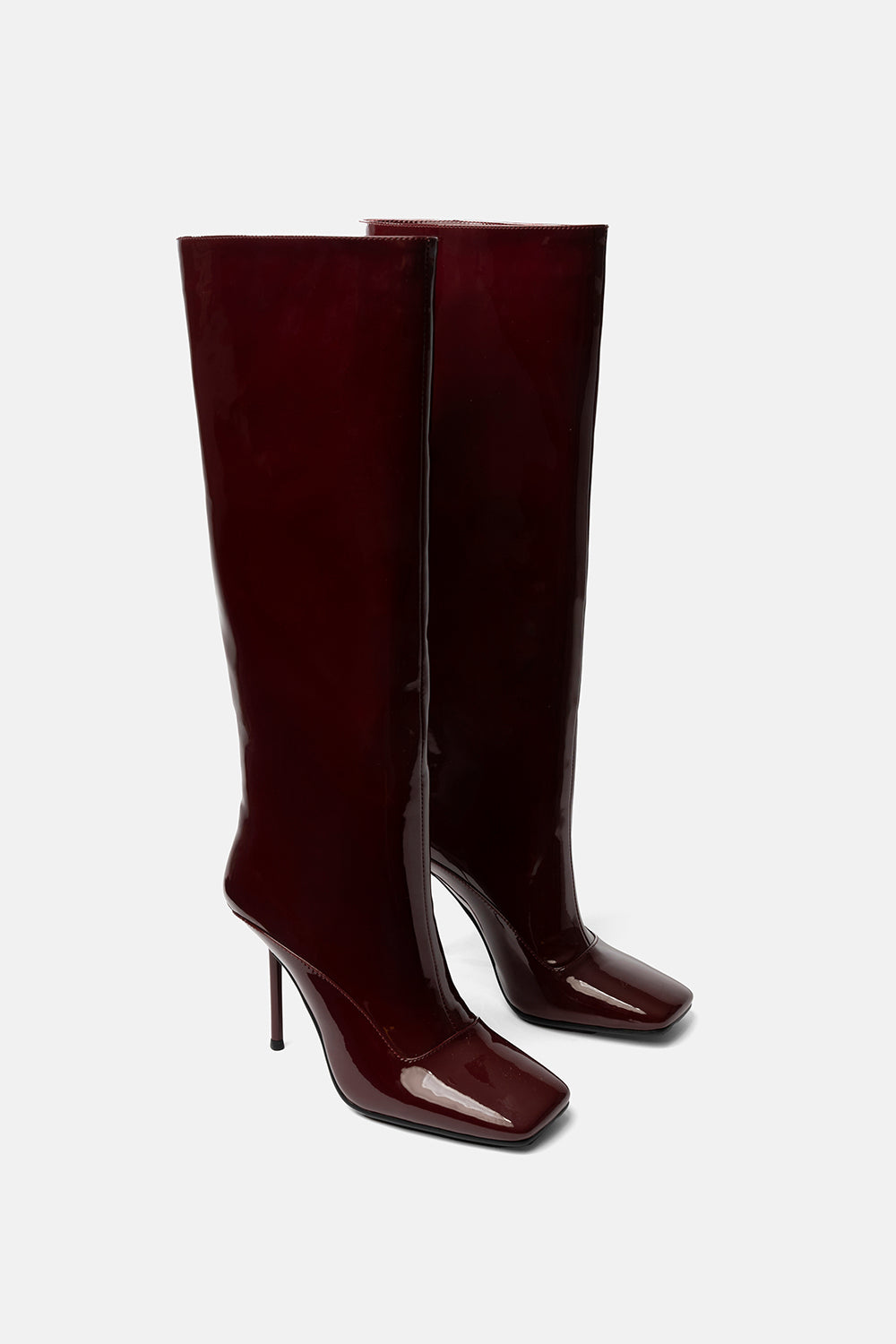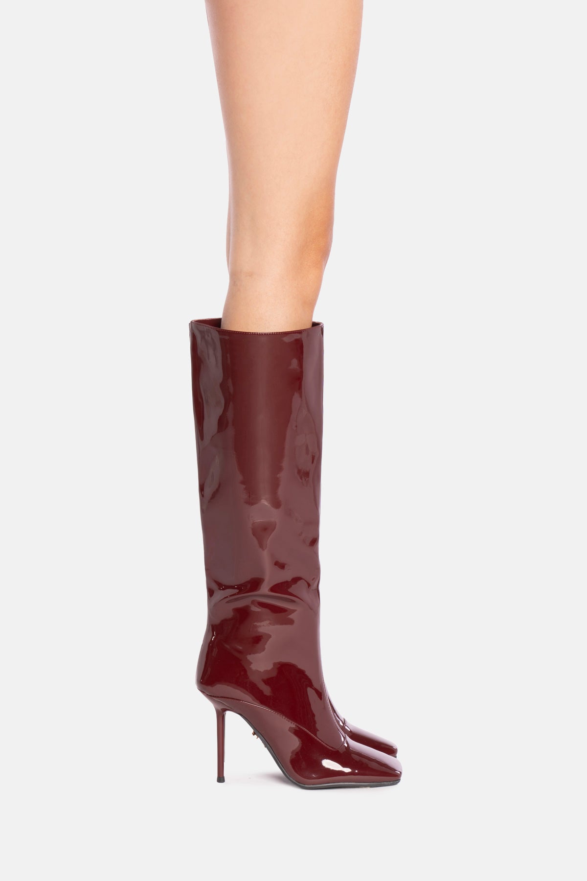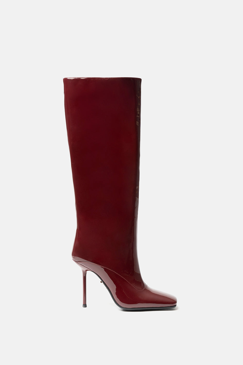 Stivale alto prugna in vernice liscia. Tacco alto